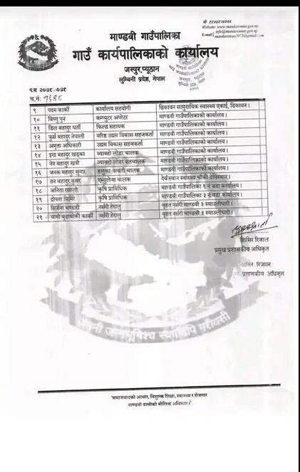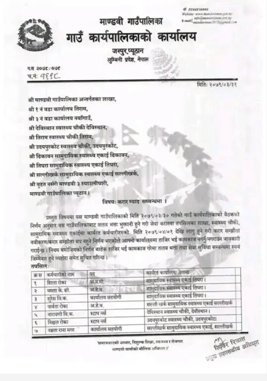 > स्थानीय सरकार > माण्डबिले हटायो करार कर्मचारी !