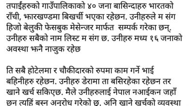 प्यार अलि खाँन प्यूठान, २२ वैशाख । रोजगारीका लागि भारतका विभिन्न ठाउँमा पुगेका प्यूठानी बेखर्ची भएका छन् । कोरोनाबाट बच्न गरिएको लकडाउनका कारण भारतका विभिन्न ठाउँमा रोजगारीका लागि पुगेका प्यूठानी समस्यामा परेको खबर आएको छ । नौबहिनि गाउँपालिका वडा नं. ७ र ८ का करिब ४० जना व्यक्ति बेखर्ची भएका छन् । भारतको राची, झारखण्डमा … Continue reading बेखर्ची भए भारतमा गएका प्यूठानी