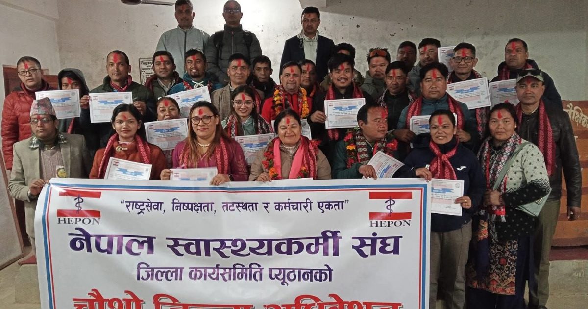 प्यूठान । नेपाल स्वास्थ्यकर्मी संघ प्यूठानको चौथो जिल्ला अधिवेशनबाट थानेश्वर न्यौपानेको अध्यक्षतामा नयाँ कार्यसमिति निर्वाचित भएको छ ।