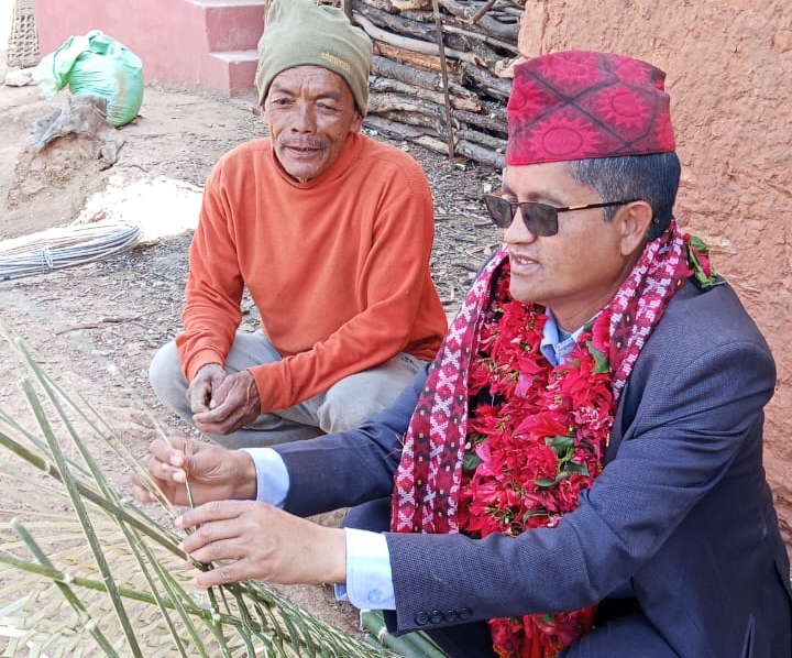 प्यूठान । कहिले गलाभरी माला त कहिले प्रतिस्पर्धीसँग कम्मर मर्काई मर्काइ नाँचेर चर्चामा रहेका एमाले प्यूठानका उम्मेदवार सूर्य थापाको फेरी अर्को फोटोले चर्चा पाएको छ । विहिवार चुनावी घरदैलोका क्रममा ऐरावती गाउँपालिका-४ गोल्जामा डोको बुन्दै गरेको तस्बिर सार्बजनिक भयो ।