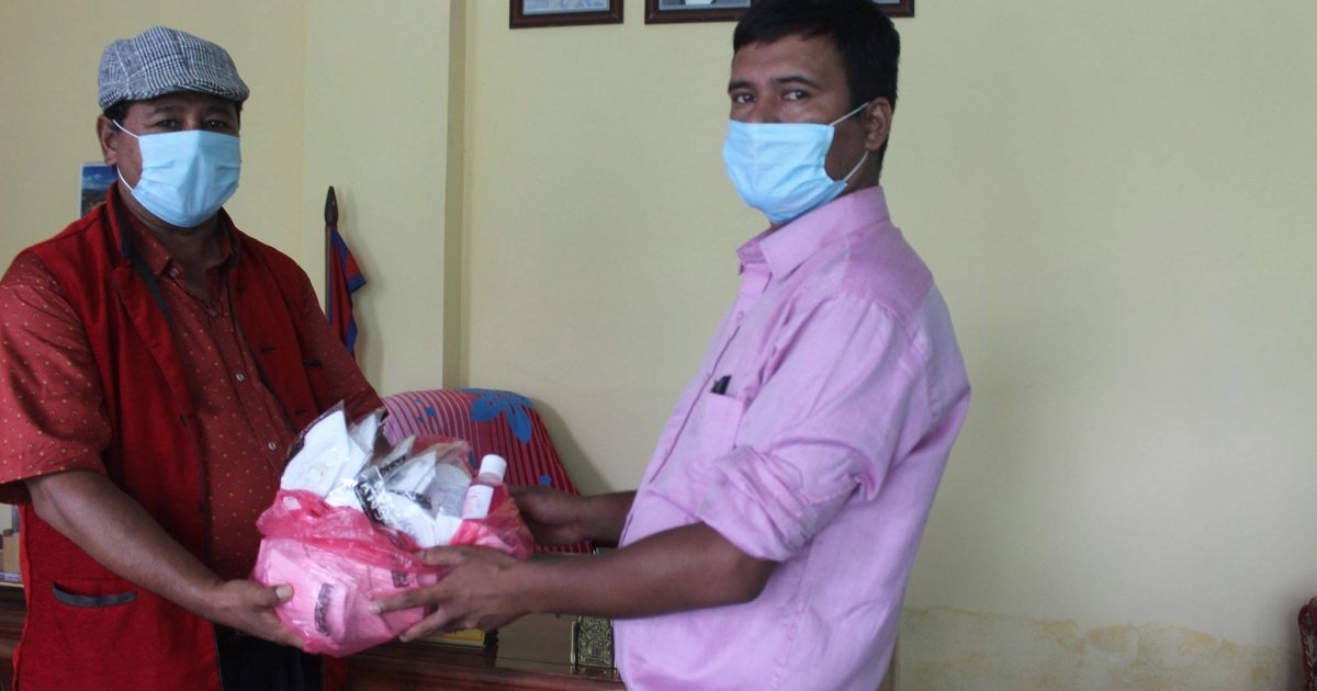 पत्रकार महासंघलाइ ४० मास्क र २० पिस सेनिटाइजर