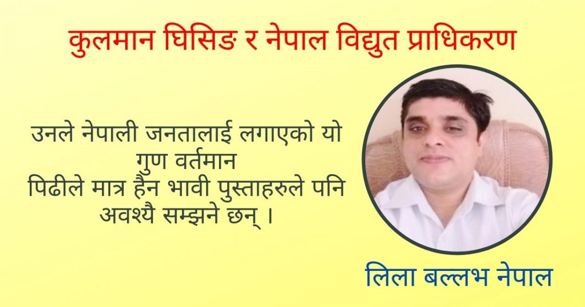 दैनिक १८ घण्टा सम्मको लामो र टिठ लाग्दो लोडसेडिङको पूर्ण रुपमा अन्त्य गर्दै नेपाल र नेपालीको लागि उज्यालोको ज्योति बन्दै समृद्ध नेपालको मनोबल उच्च बनाउँदै सम्पूर्ण नेपालीहरुको मानसपटलमा बस्न सफल रामेछापको दुर्गम गाउँ बेथानको एक साधारण परिवारमा २०२७ मंशिर १० गते बुधवार जन्म भई सम्पूर्ण राष्ट्रप्रेमीहरुको प्रेरणाको स्रोत तथा सबैका आदरणिय व्यक्तित्व बन्न सफल भएका छन् कुलमान घिसिङ । सम्पूर्ण नेपालीहरुको घर र मनलाई उज्यालो बनाउने मूल अभियानका साथ नेपाल विद्युत प्राधिकरणका कार्यकारी निर्देशक बन्न पुगेका घिसिङले नियुक्ति हुनु भन्दा अघि विना कारण जिम्मेवार विहिन अवस्थामा पुग्नु पर्यो भने नियुक्तिको चरणमा केहि सीमित स्वार्थ समूहद्वारा उनको नियुक्ति बदर गर्न अदालतमा रिट समेत हाल्न भ्याए । तर अन्ततः अदालतले उनको नियुक्तिको बाटो खोलि दियो र नेपाल विद्युत प्राधिकरणको कार्यकारी निर्देशक बन्न सफल भए ।यो चार वर्षको कार्यकालमा साँच्चै नै आफ्नो अभियानलाइ पुरा गर्न सफल भएका छन् घिसिङ । आज गाउँ गाउँका टुकी र लालटिनहरु सहजै विस्तापित भएका छन् साथै नेपाल विद्युत प्राधिकरणको खस्कदो साख पनि चम्किएको छ । “गरे के हुँदैन” भन्ने सिद्धान्त आज चरितार्थ भएको छ । “असम्भव भन्ने कुरा मुर्ख को डायरीमा मात्र हुन्छ” भन्ने भनाई कार्यकारी निर्देशक घिसिङले आज प्रमाणित गरिदिएका छन् । नेपालको लोडसेडिङ जिन्दगिभर हट्दैन र कसैले हटाउन पनि सक्दैन र कसैले हटाएर देखायो भने कान काटेर पातमा राखिदिन्छु भन्नेहरु आज यसको जस आफुले लिन घिसिङलाई विस्तापित गर्दै नेपाल विद्युत प्राधिकरणको कार्यकारी निर्देशक बन्ने होडबाजीमा देखिन्छन् ।