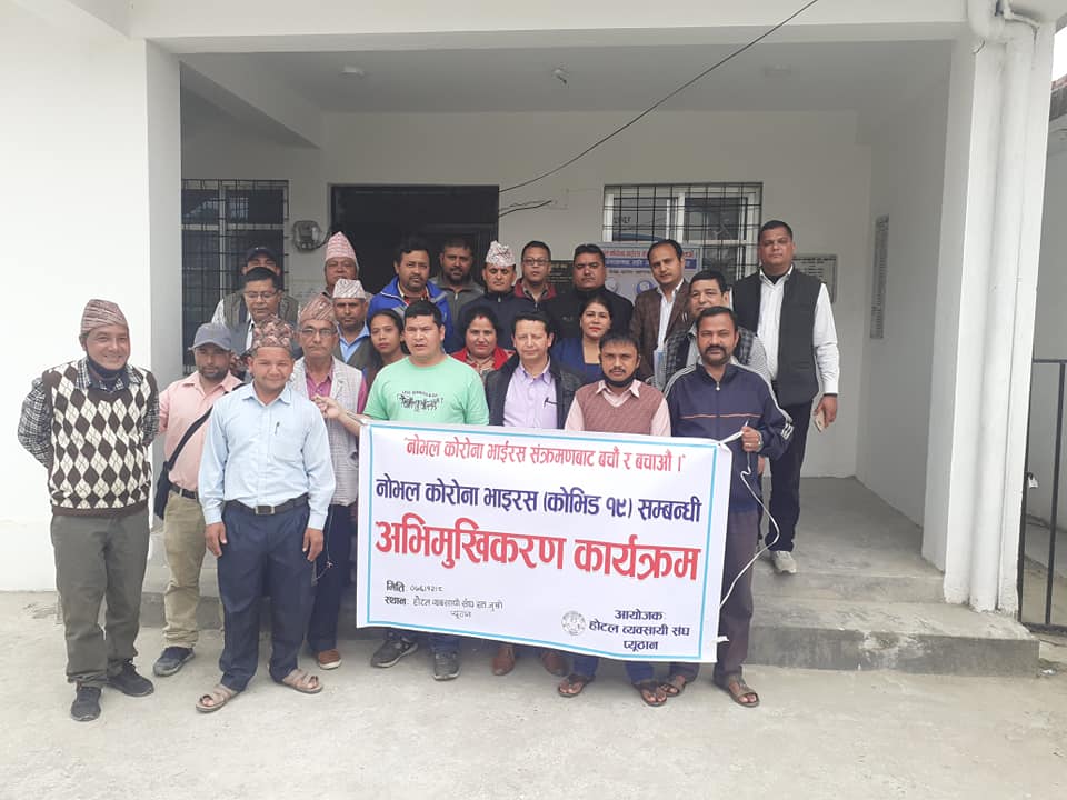 कोरोना भाइरस (कोभिड १९) को जोखिम र सतर्कताको विषयमा होटल व्यवसायीहरुलाई अभिमुखिकरण गरिएको छ । जिल्लाभर संक्रमणबाट बच्नका लागि सतर्कता अभियान चलिरहेका बेला शनिबार होटल व्यवसायीहरुले कोरोनाको जोखिमबाट बच्ने उपायका विषयमा छलफल गरेका हुन् ।