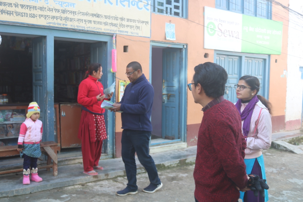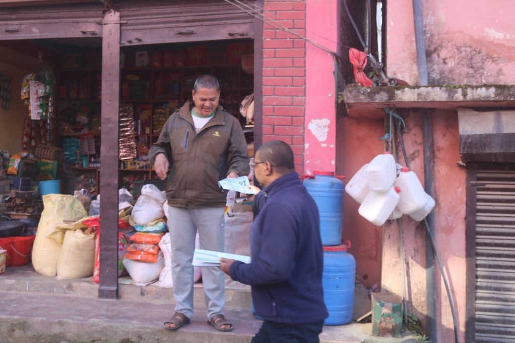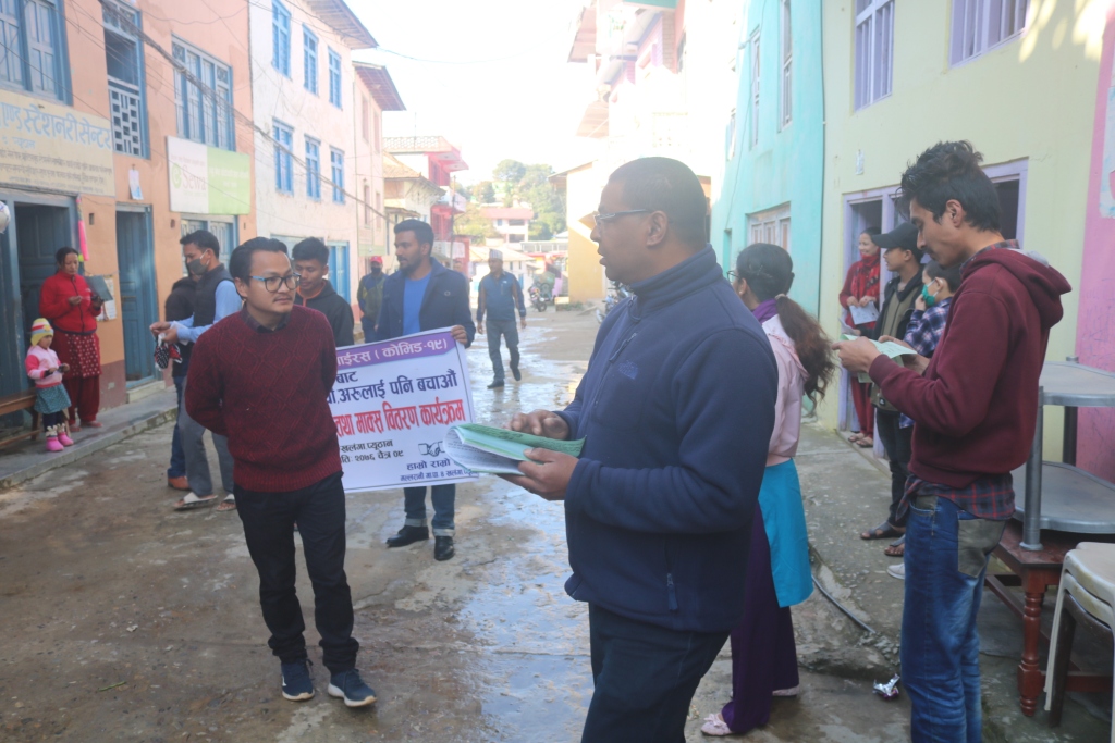 विश्वव्यापी फैलिरहेको संक्रमणबाट आफु पनि बचौं र अरुलाई पनि बचाऊ भन्ने नारा सहित घरदैलो सचेतना गरिएको गाउँपालिका स्वास्थ्य शाखा प्रमुख पारस शाहीले बताउनुभयो ।