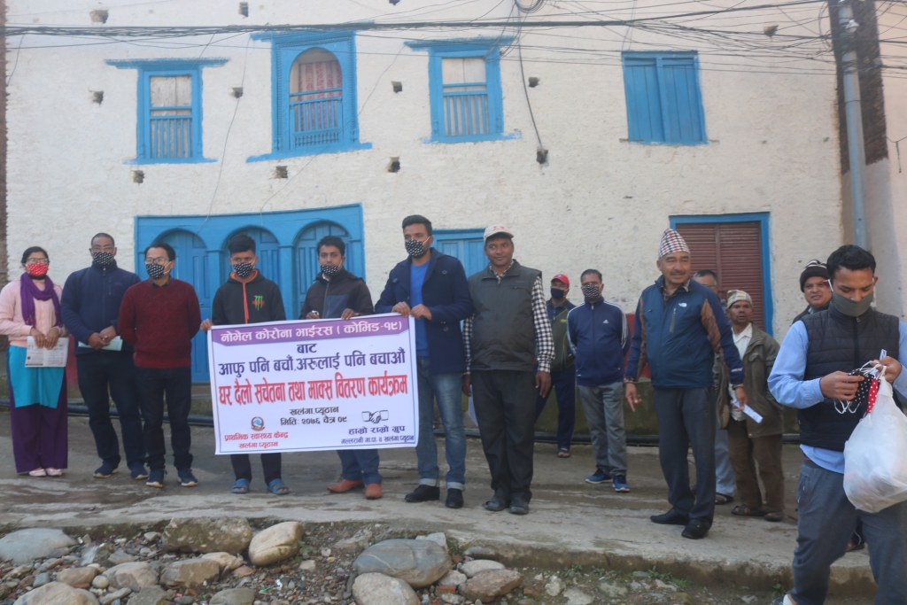 जोखिमको यस अवस्थामा नीजि क्षेत्रको समेत सहकार्य बढाउनका लागि माक्स वितरण गरिएको हाम्रो राम्रो ग्रुपका सन्देश आचार्यले बताउनुभयो । ग्रुपले खलंगामा फर्निचर तथा फर्निसिङ्ग, फेन्सी, हार्डवयर लगायतका व्यवसायिक सेवा प्रदान गर्दै आएकोछ ।