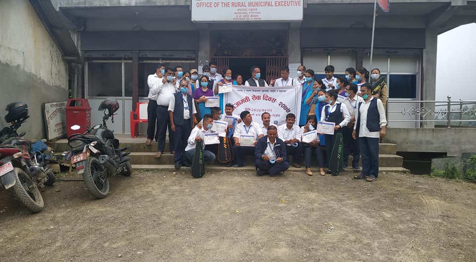 दिवसको अवसरमा गाउँपालिका स्तरिय अन्तर कर्मचारी व्याड्मिन्टन प्रतियोगिता सञ्चालन गरिएको गाँउपालिका प्रमुख प्रशासकिय अधिकृत अमर घर्तिले जानकारी दिनुभयो । ५ जना महिला टिम र ५ पुरुष टिमको सहभागिता रहेको उक्त प्रतियोगितामा महिलातर्फ प्रथम दिक्षा देवकोटा र विमला जि. सीको टिम र दोस्रो साधना सिंह र आयुषा बस्नेत टिम भएका छन् भने पुरुषतर्फ प्रथम टोप बहादुर शाहि र हेमन्त जि सीको टिम र दोस्रो अमर बहादुर घर्ति र रवि रानाको टिम भएका छन् । विजेता टिमलाई ज्याकेट, पेन डायरी लगायतका पुरस्कार वितरण गरिएको गाउँपालिकाले जनाएको छ । साथै गाउँपालिका कार्यालय परिसरमा सरसफाईसमेत गरिएको प्रमुख प्रशासकिय अधिकृत घर्तिले बताउनुभयो ।