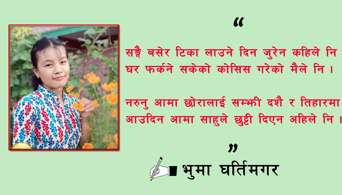 मनाउनु आमा दशै र तिहार म घर मा नभए पनि