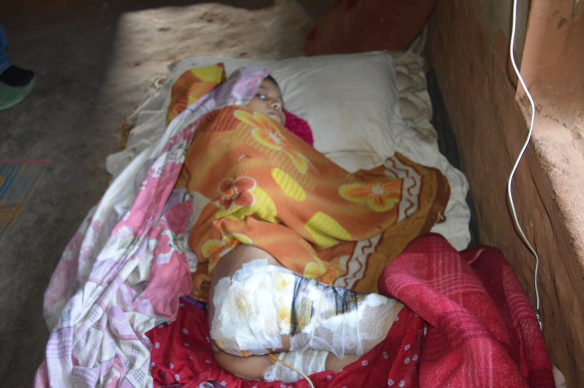 कृष्णा गत असार ५ गते जंगलमा आमासँग घाँस काट्न गएको बेला भिरबाट लडेर घाईते हुनुभएको हो । दुर्घटनापछि उपचारका लागि भैरहवा पु¥याएपनि आर्थिक अभावले परिवारले बालिकालाई घरमा ल्याएर राखेका छन् । त्यतिबेला करिब ४० हजार जति जुटाएर उपचारका लागि गएका परिवारले १५ दिनसम्म उपचारका लागि कृष्णालाई अस्पतालमा राखे । त्यतिन्जेल करिब ५ लाख रुपियाँ सकियो । डाक्टरले बच्चाको मेरुदण्ड सहित शरिरको सवै हड्डी भाँचिएको बताए । अझै बच्चालाई अस्पतालमै राख्नुपर्ने र थप उपचार आवश्यक पर्ने सल्लाह अस्पतालका डाक्टरले दिए ।तर परिवारले १५ दिनमा ५ लाख खर्च पुगिसकेको भन्दै थप उपचार गराउन आर्थिकले नभ्याउने भन्दै कृष्णालाई घरमा ल्याउने निर्णय गरे । १७ दिनको दिन बच्चालाई घरमा ल्याइयो । घरमा सुताएर राखिराख्दा शरिरका विभिन्न ठाउँमा घाउ भएर थप संक्रमणको जोखिम समेत अहिले बढेको छ । छोरीको उपचारका लागि आफ्नो घरबारी बैंकमा राखी ३ लाख ऋण लिएको घाईते बालिकाको आमा बालिकाले बताउनुभयो ।
