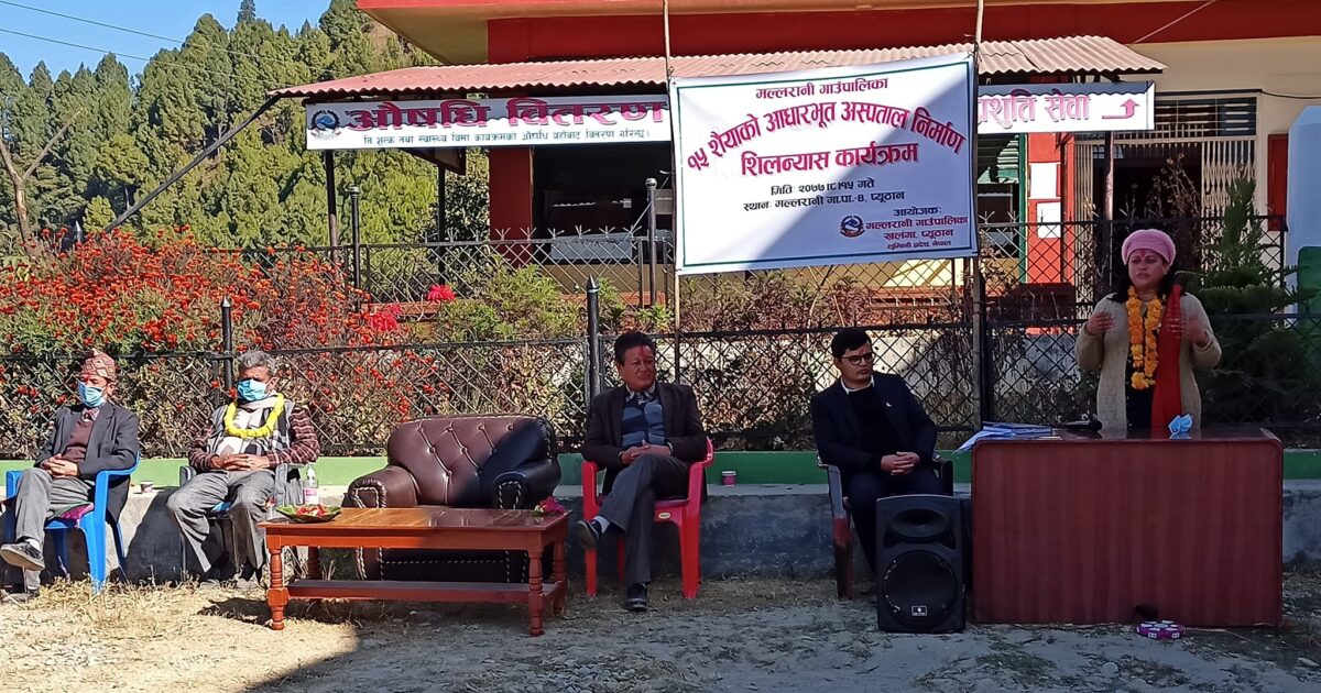 जिल्लाका ऐरावती गाउँपालिका, माण्डवी गाउँपालिका र मल्लरानी गाउँपालिकाले १५/१५ शैयाको अस्पताल निमार्णको शुरुवात गरेका छन् । मल्लरानी गाउँपालिका वडा नं.४ स्थित खंलगा प्राथमिक स्वास्थ्य केन्द्रमा निर्माण हुने भवनको सांसद दुर्गा पौडेलले शिलान्यास गर्नुभएको हो । आगामी दुई वर्ष भित्र निर्माण सम्पन्न गर्ने गरि निमार्ण कार्यको थालनि गरिएको गाउँपालिका प्रमुख प्रशासकिय अधिकृत बालकृष्ण थापाले जानकारी दिनुभयो । भवन निर्माणका लागि दुई करोड बजेट प्राप्त भएको छ ।