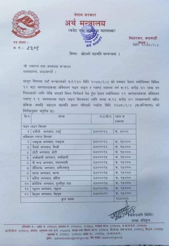 प्युठान,४ जेठ। सरकारले प्युठान अस्पतालमा अक्सिजन प्लान्ट जडान गर्ने बजेट बिनियोजन गरेको छ।