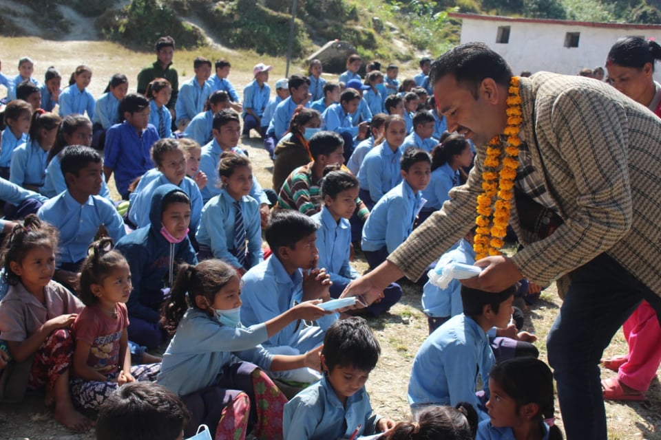 कोभिडबाट बच्नका लागि थालिएको मास्क वितरण अभियान अहिले झिमरुक गाउापालिकाका विभिन्न विद्यालयमा भइरहेको नेता पोख्रेलले जानकारी दिनुभयो ।