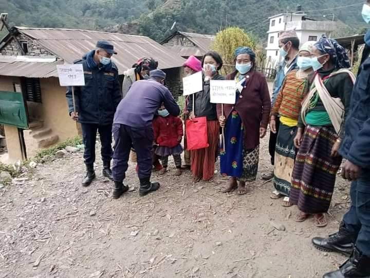 सडकमा गुड्ने सवारी साधन, पैदल यात्रु र बजार क्षेत्रका सर्वसाधारणलाई तपाइको माक्स खोइ ? भन्ने कार्यक्रम मार्फत सचेतना सहित केही माक्स सेनिटाइजर वितरण गरेको अस्थायी प्रहरी विटका जुम्रिका इन्चार्ज दिपक पाण्डेले बताउनुभयो । पैदल यात्रा गर्दा होस वा सवारी साधनमा यात्रा गर्दा होस अनिवार्य माक्स प्रयोग गर्न सर्वसाधारणलाई प्रहरीले अनुरोध गरेको छ ।