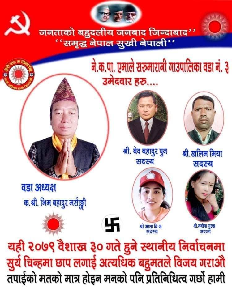 केहिबेर अघि सम्पन्न ३ नम्वर वडाको मतगणनामा एमालेबाट भिम बहादुर मस्र्याङ्गी सहितको प्यानल विजयी भएको छ । उहाँले ८५३ र प्रतिस्पर्धी हिमालय रिजालले ६१० मत प्राप्त गर्नुभयो ।