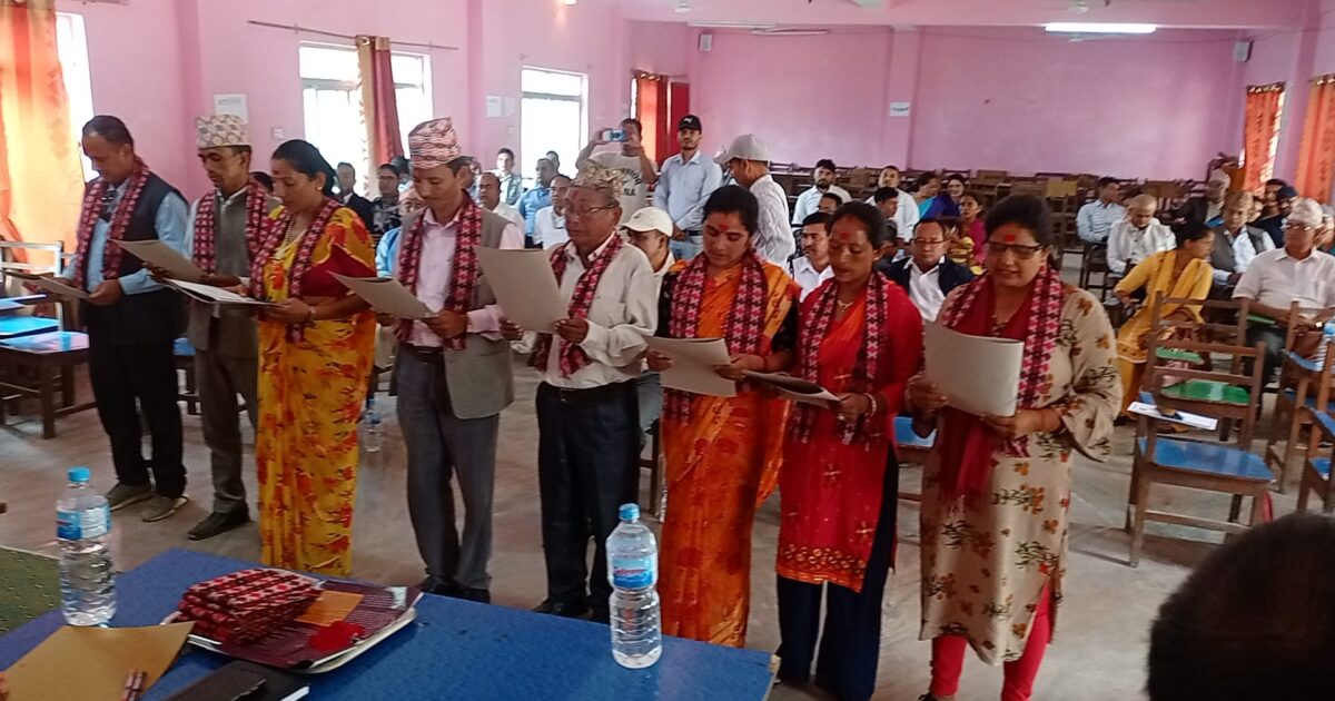 निर्वाचित पदाधिकारीलाई मुख्य निर्वाचन अधिकृत तथा जिल्ला न्यायधीश श्यामलाल घिमिरेले सपथ खुवाउनुभएको छ ।