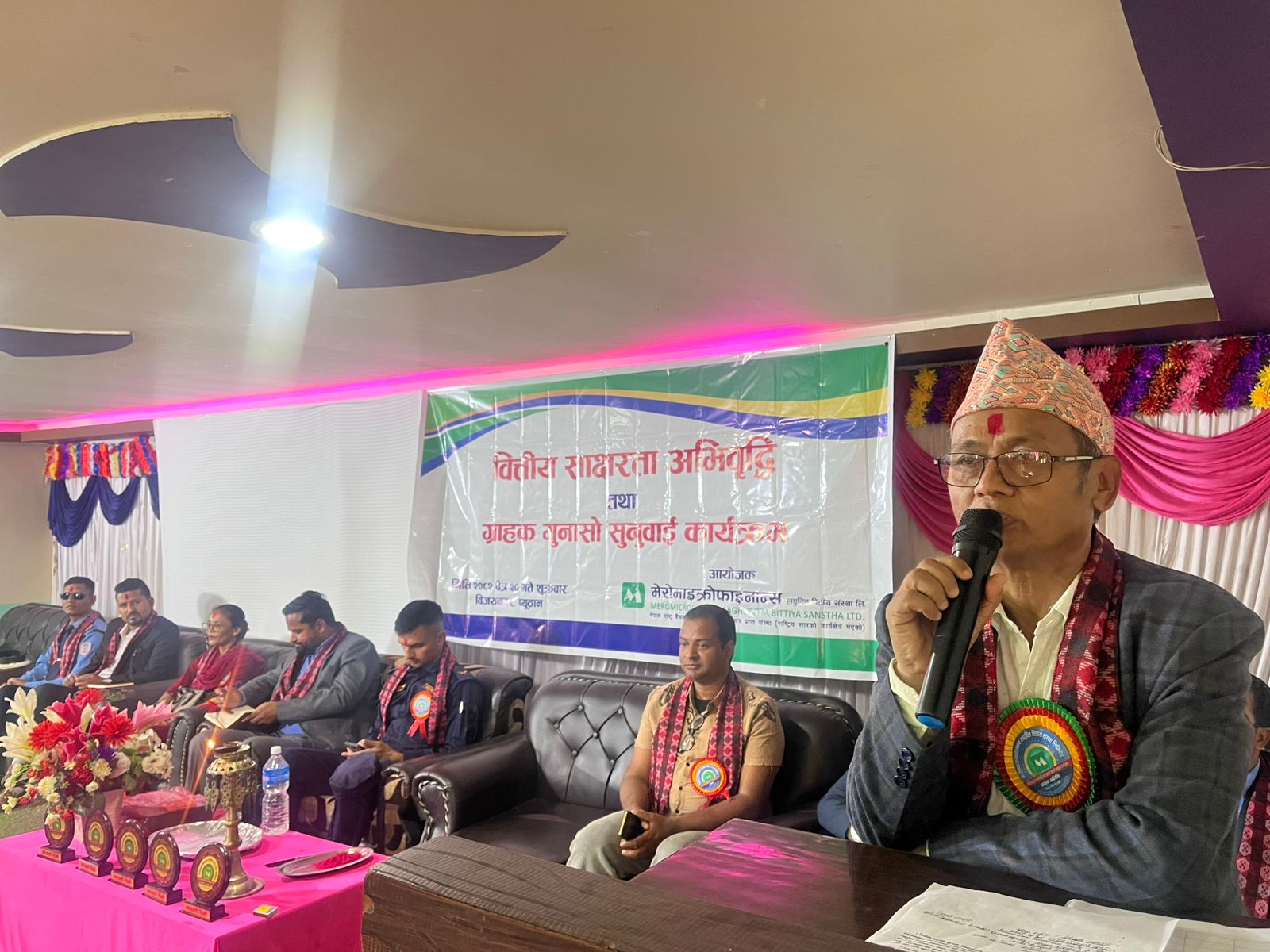 प्यूठान । मेरो माईक्रोफाइनान्स लघुवित्त वित्तिय संस्थाले प्यूठानमा ११ करोड १७ लाख ८८ हजार १ सय ६६ रुपैंया लगानी गरेको छ । २०७३ सालमा स्थापना भएको प्यूठान शाखामा १ हजार २२० जना सदस्यहरु आवद्ध रहेका छन् । शुक्रबार जुम्रिमा आयोजित वित्तिय साक्षरता अभिबृद्धि तथा ग्राहक गुनासो सुनुवाई कार्यक्रममा संस्थाका शाखा प्रमुख